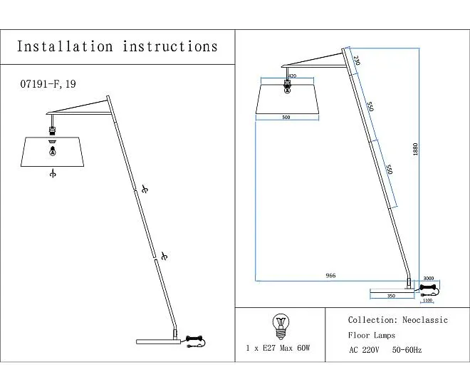 | Количество ламп/тип ламп | E27 1*40w |