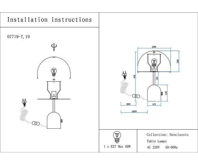 | Количество ламп/тип ламп | E27 1*40w |