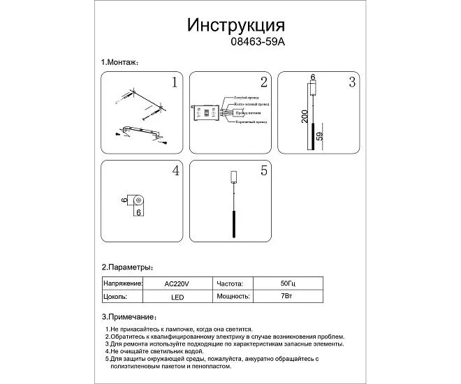 | Количесво ламп и мощьность | LED 3W (3000K) |