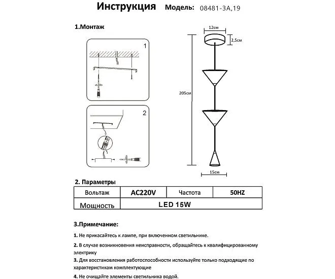 | Количество ламп/тип ламп | Led 15W (4000K) |