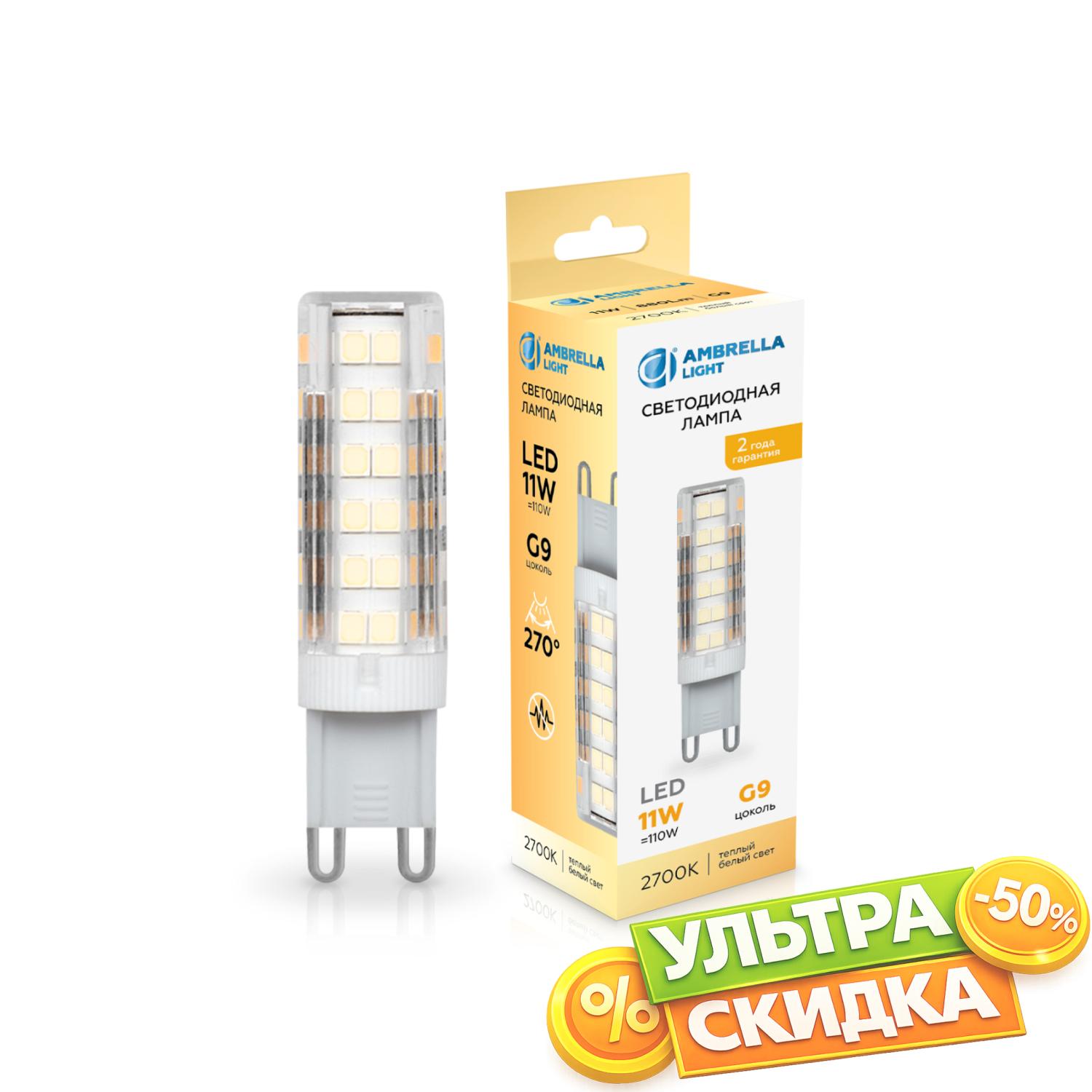 Купить 101103 LED G9 11W 2700K 220-240V Светодиодная лампа G9 11W 2700K в интернет-магазине ЛюстраНаДом со скидкой и кешбеком. Работаем с НДС, доставляем на дом и в ПВЗ. Продажа Ambrella light 101103 G9 осуществляется с доставкой по Москве и регионам России бесплатно от 5000 р.