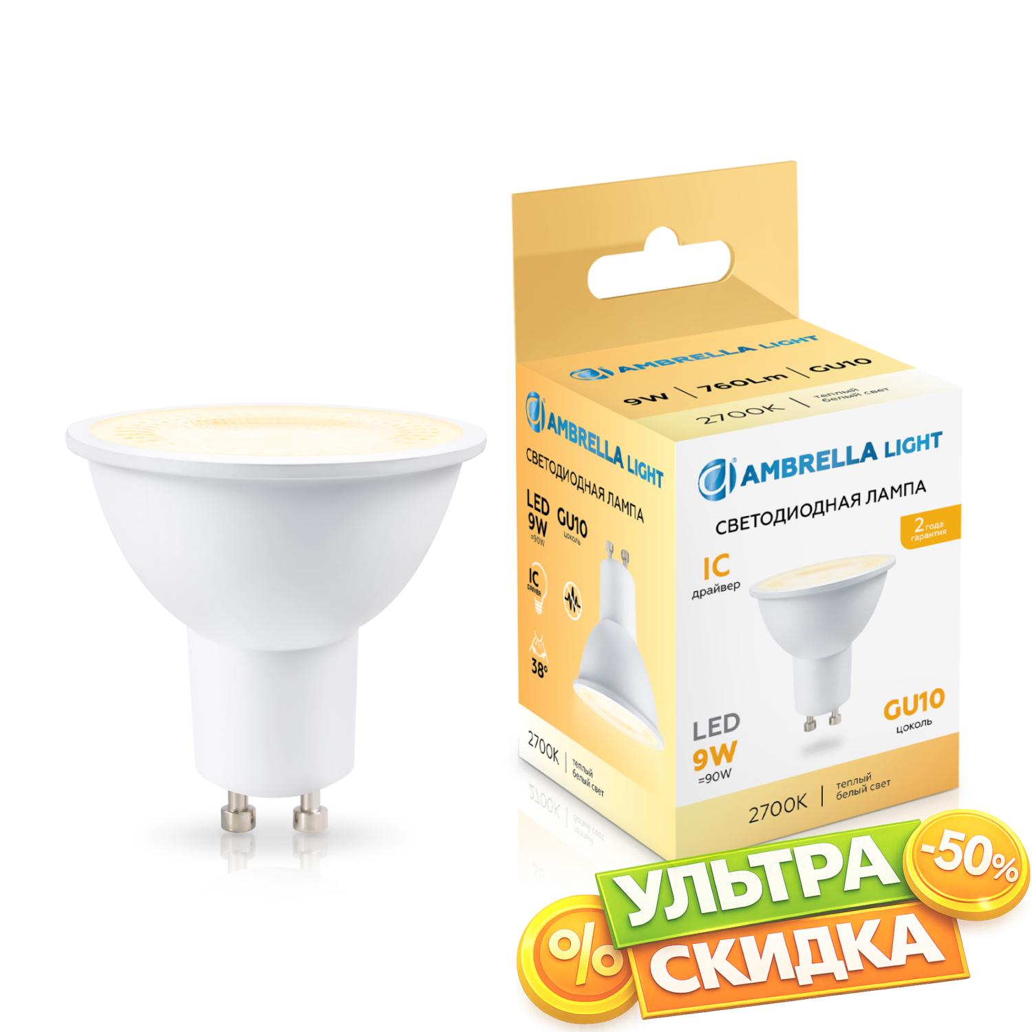 Купить 190903 LED MR16 9W IC GU10 2700K 175-265V 38° Светодиодная лампа Lens 38° MR16 9W 2700K в интернет-магазине ЛюстраНаДом со скидкой и кешбеком. Работаем с НДС, доставляем на дом и в ПВЗ. Продажа Ambrella light 190903 MR16 осуществляется с доставкой по Москве и регионам России бесплатно от 5000 р.