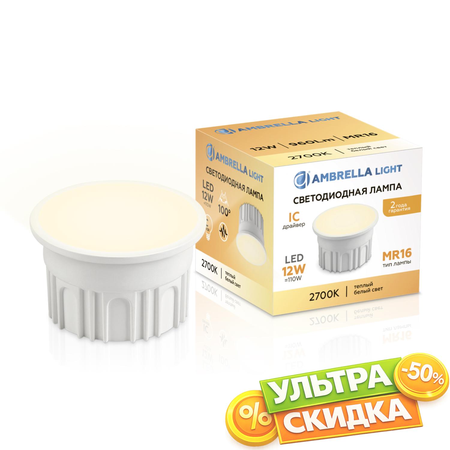Купить 212101 Лампа LED MR16-DD 12W IC 2700K 220-240V 100° в интернет-магазине ЛюстраНаДом со скидкой и кешбеком. Работаем с НДС, доставляем на дом и в ПВЗ. Продажа Ambrella light 212101 BULBING осуществляется с доставкой по Москве и регионам России бесплатно от 5000 р.