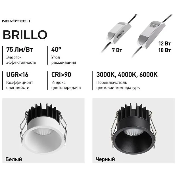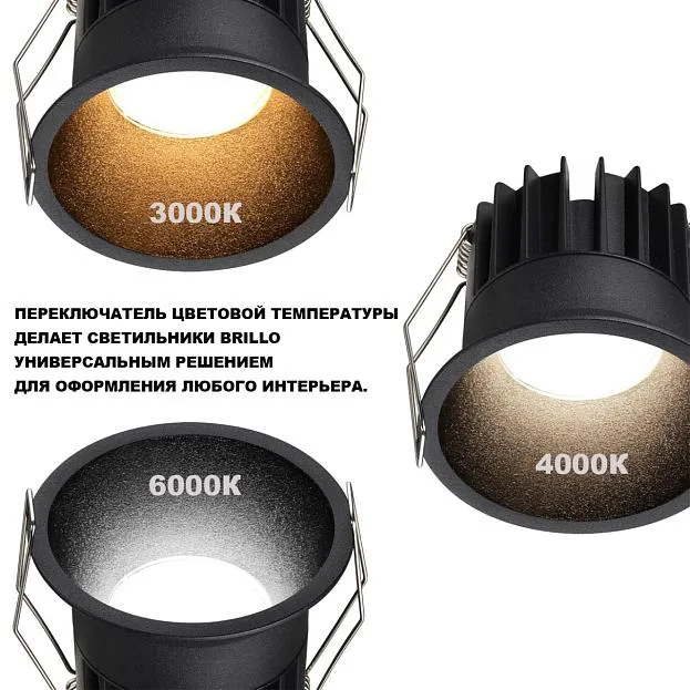 Купить 359866 WIR NT26 000 черный Светильник встраиваемый с переключателем цв. температуры IP20 LED 12W 100-265V 3000К/4000К/6000К BRILLO Novotech в интернет-магазине ЛюстраНаДом со скидкой и кешбеком. Работаем с НДС, доставляем на дом и в ПВЗ. Продажа Novotech 359866 BRILLO осуществляется с доставкой по Москве и регионам России бесплатно от 5000 р.