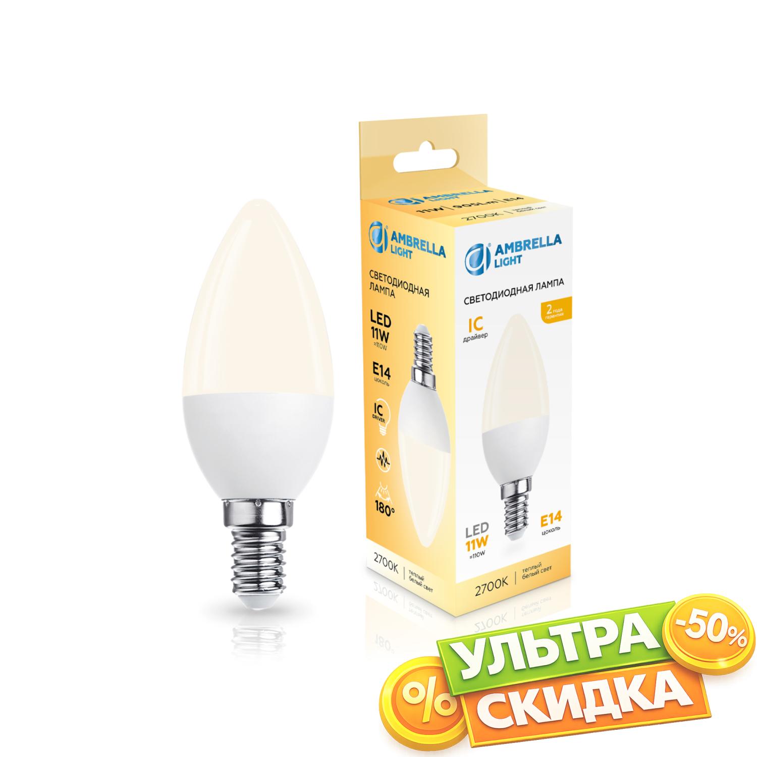 Купить 371113 LED C37 11W IC E14 2700K 175-265V Лампа светодиодная Свеча C37 11W 2700K в интернет-магазине ЛюстраНаДом со скидкой и кешбеком. Работаем с НДС, доставляем на дом и в ПВЗ. Продажа Ambrella light 371113 C37 осуществляется с доставкой по Москве и регионам России бесплатно от 5000 р.