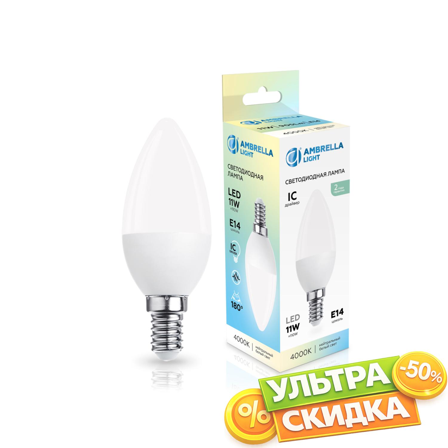 Купить 371114 LED C37 11W IC E14 4000K 175-265V Лампа светодиодная Свеча C37 11W 4000K в интернет-магазине ЛюстраНаДом со скидкой и кешбеком. Работаем с НДС, доставляем на дом и в ПВЗ. Продажа Ambrella light 371114 C37 осуществляется с доставкой по Москве и регионам России бесплатно от 5000 р.
