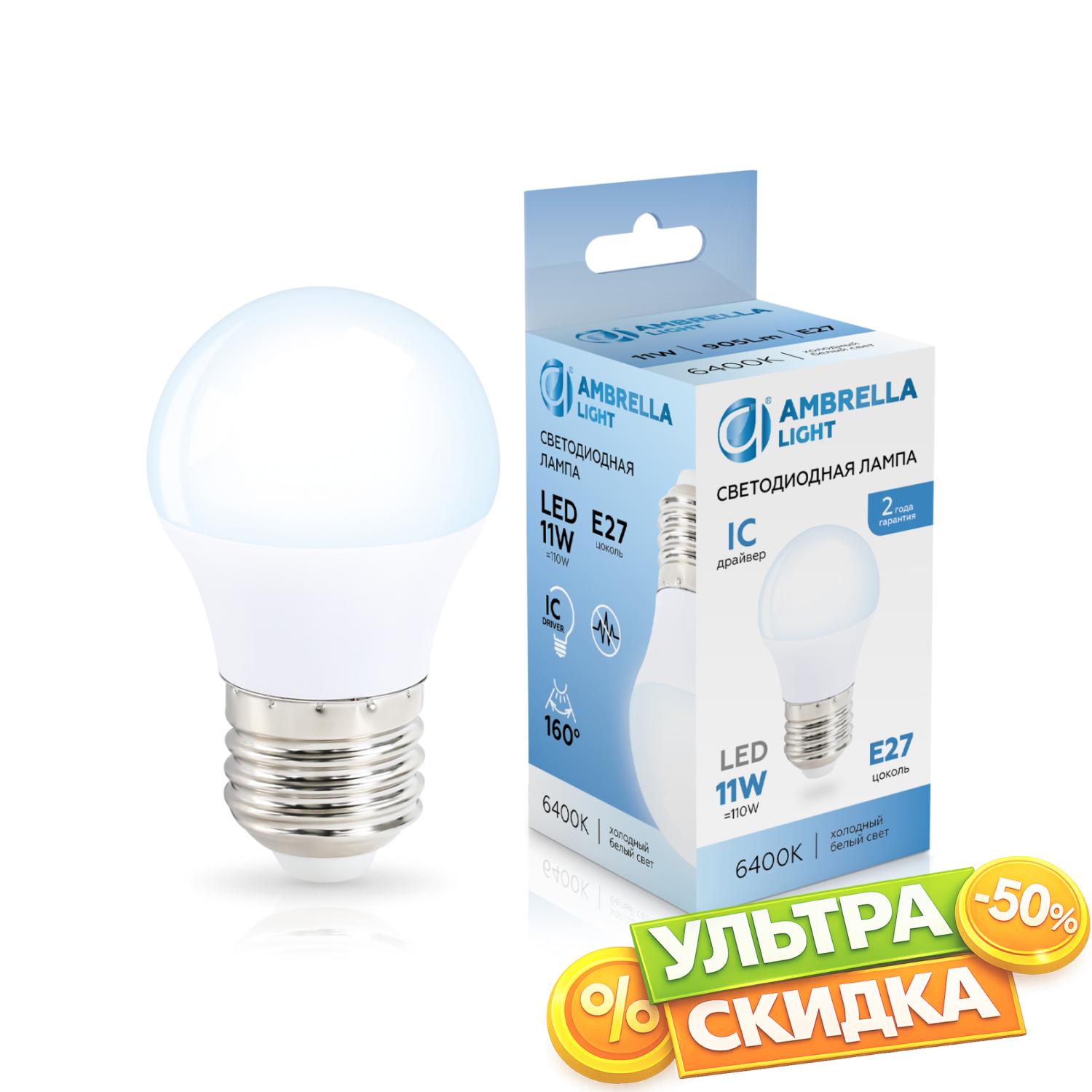 Купить 451106 LED G45 11W IC E27 6400K 175-265V Лампа светодиодная Шар G45 11W 6400K в интернет-магазине ЛюстраНаДом со скидкой и кешбеком. Работаем с НДС, доставляем на дом и в ПВЗ. Продажа Ambrella light 451106 G45 осуществляется с доставкой по Москве и регионам России бесплатно от 5000 р.