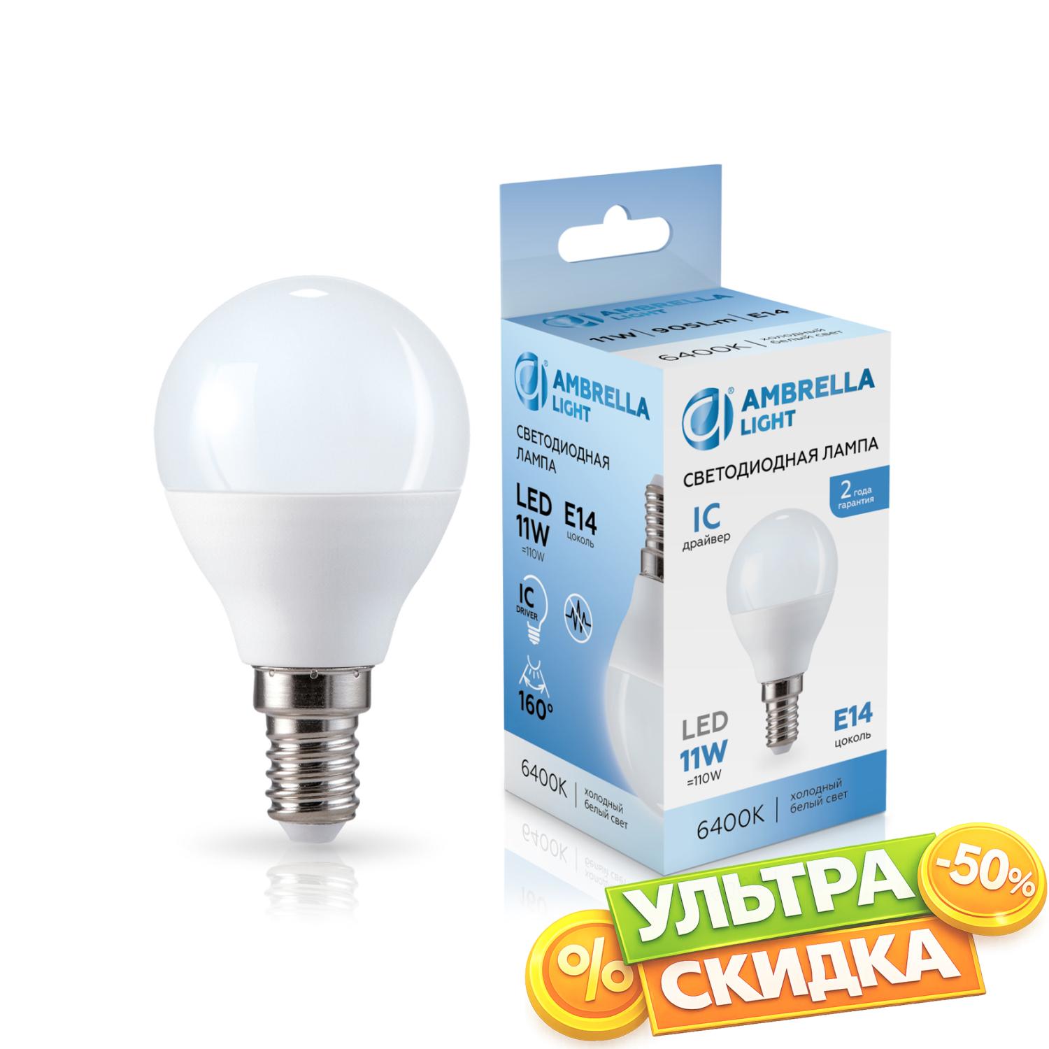 Купить 451116 LED P45 11W IC E14 6400K 175-265V Лампа светодиодная Шар P45 11W 6400K в интернет-магазине ЛюстраНаДом со скидкой и кешбеком. Работаем с НДС, доставляем на дом и в ПВЗ. Продажа Ambrella light 451116 G45 осуществляется с доставкой по Москве и регионам России бесплатно от 5000 р.