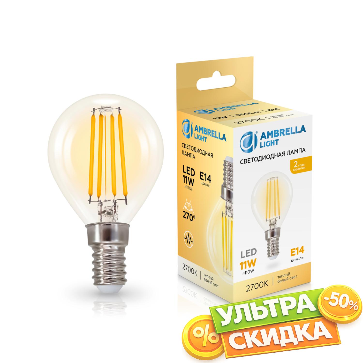 Купить 451133 Filament LED P45 11W E14 2700K 220-240V Лампа светодиодная Шар P45 11W 2700K в интернет-магазине ЛюстраНаДом со скидкой и кешбеком. Работаем с НДС, доставляем на дом и в ПВЗ. Продажа Ambrella light 451133 G45 осуществляется с доставкой по Москве и регионам России бесплатно от 5000 р.