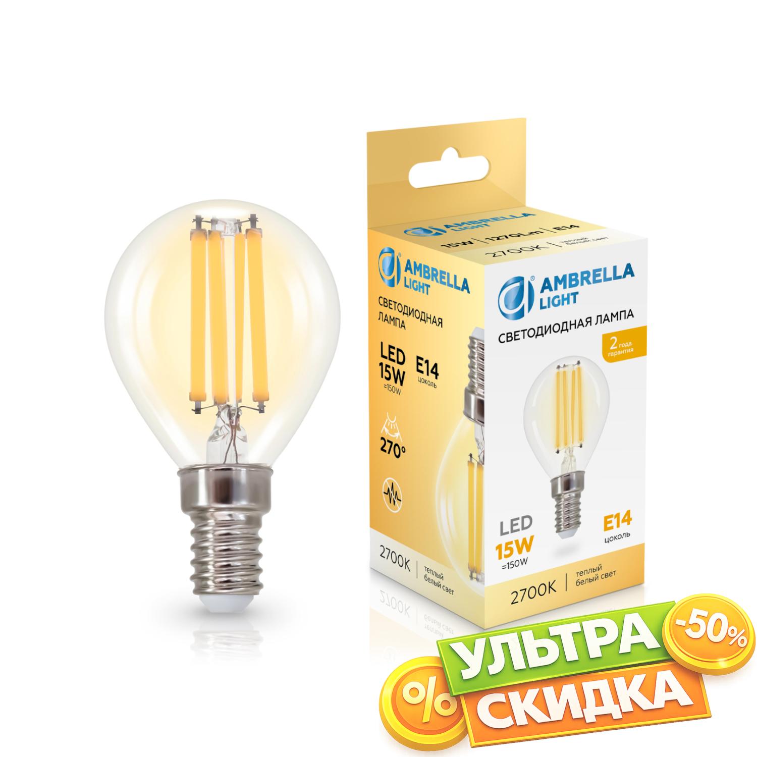Купить 451533 Filament LED P45 15W E14 2700K 220-240V Лампа светодиодная Шар P45 15W 2700K в интернет-магазине ЛюстраНаДом со скидкой и кешбеком. Работаем с НДС, доставляем на дом и в ПВЗ. Продажа Ambrella light 451533 G45 осуществляется с доставкой по Москве и регионам России бесплатно от 5000 р.