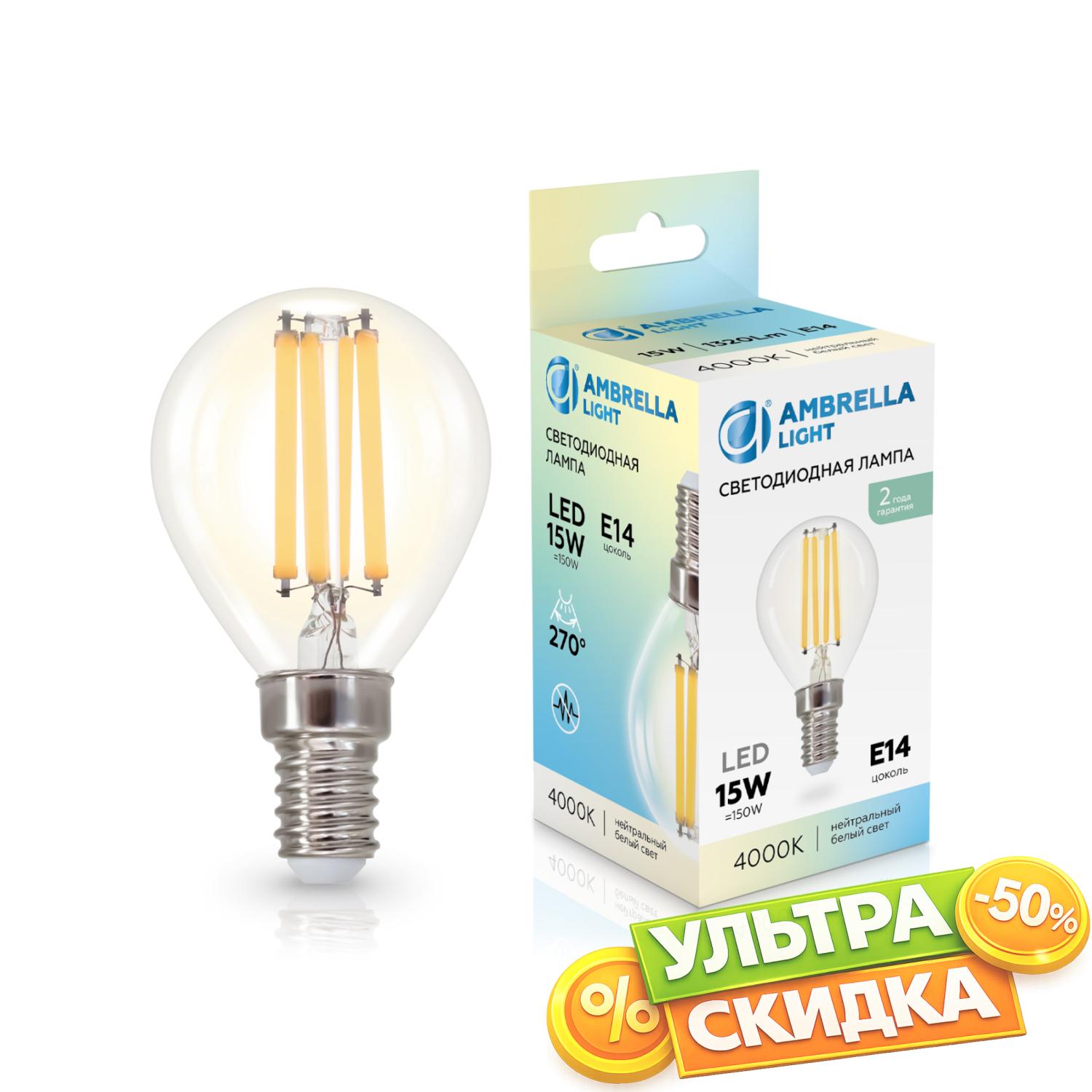 Купить 451534 Filament LED P45 15W E14 4000K 220-240V Лампа светодиодная Шар P45 15W 4000K в интернет-магазине ЛюстраНаДом со скидкой и кешбеком. Работаем с НДС, доставляем на дом и в ПВЗ. Продажа Ambrella light 451534 G45 осуществляется с доставкой по Москве и регионам России бесплатно от 5000 р.