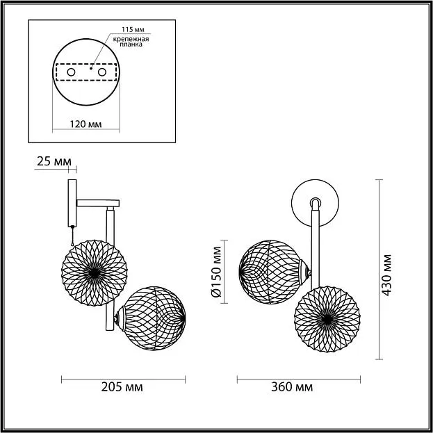 | Назначение на сайте | Настенные (бра) |