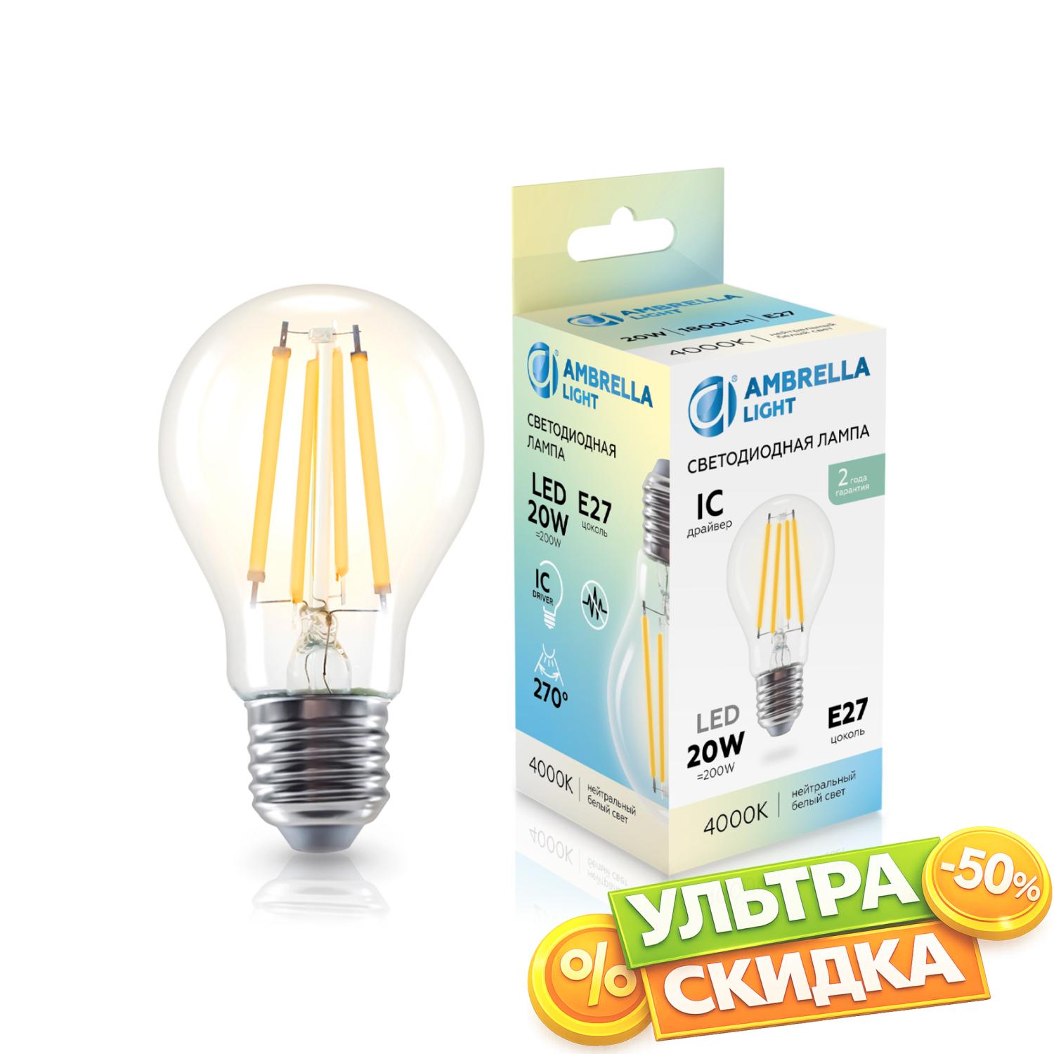 Купить 602014 Filament LED A60 20W IC E27 4000K 220-240V Лампа светодиодная Лон A60 20W 4000K в интернет-магазине ЛюстраНаДом со скидкой и кешбеком. Работаем с НДС, доставляем на дом и в ПВЗ. Продажа Ambrella light 602014 A60 осуществляется с доставкой по Москве и регионам России бесплатно от 5000 р.