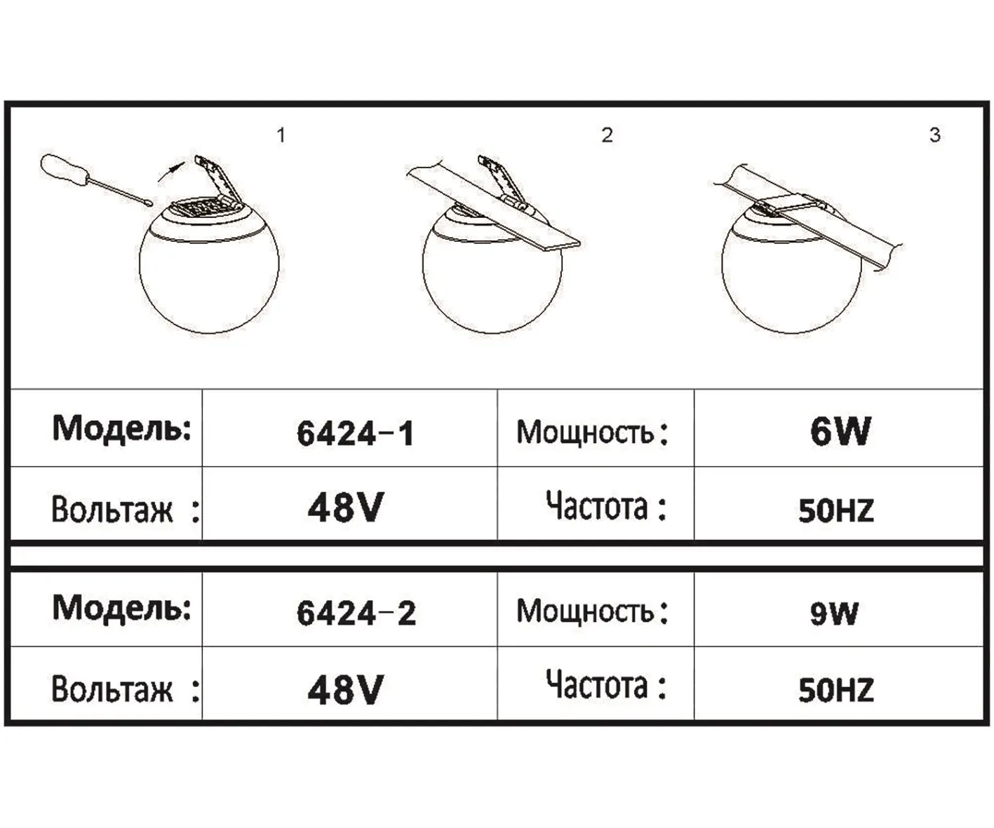 | Количество ламп/тип ламп | Led 6W (4000K) |