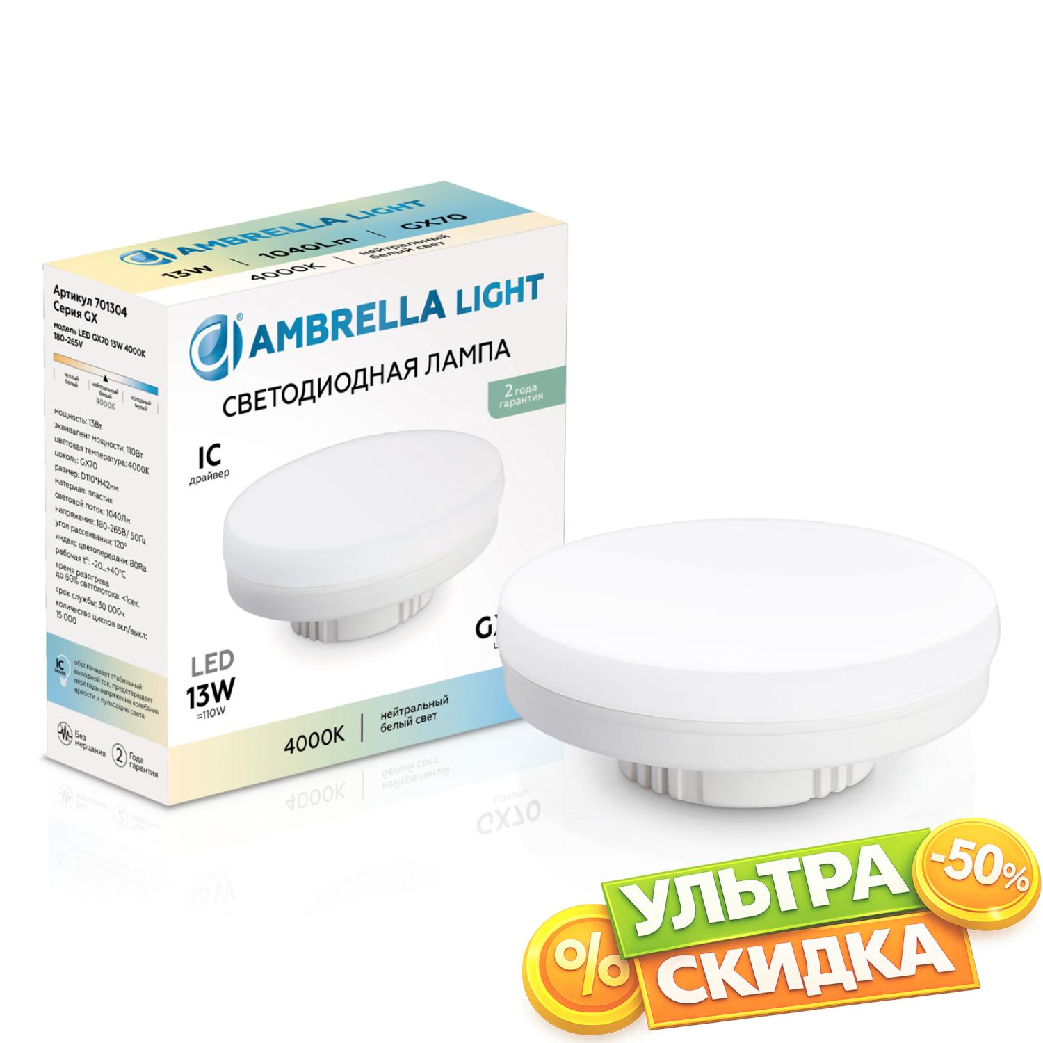 Купить 701304 LED GX70 13W IC 4000K 180-265V в интернет-магазине ЛюстраНаДом со скидкой и кешбеком. Работаем с НДС, доставляем на дом и в ПВЗ. Продажа Ambrella light 701304 BULBING осуществляется с доставкой по Москве и регионам России бесплатно от 5000 р.