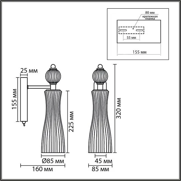 | Назначение на сайте | Настенные (бра) |