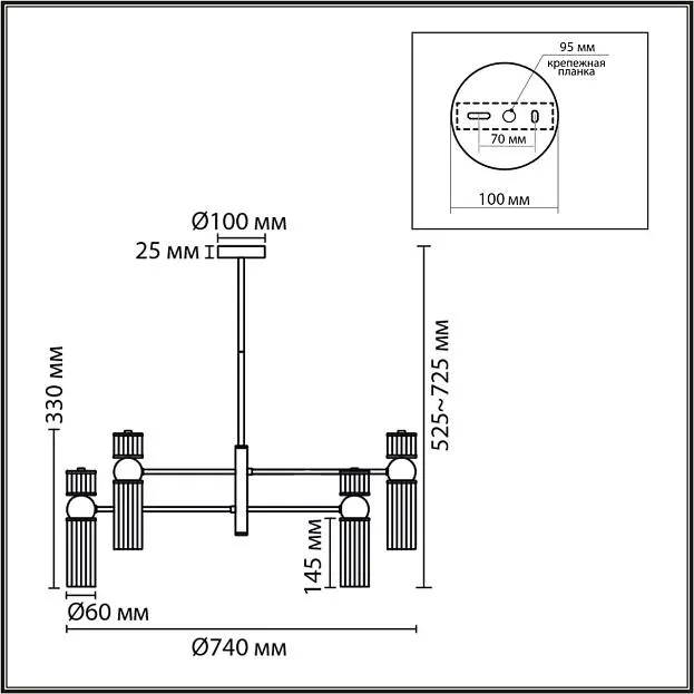 | Высота полная, мм | 725 |