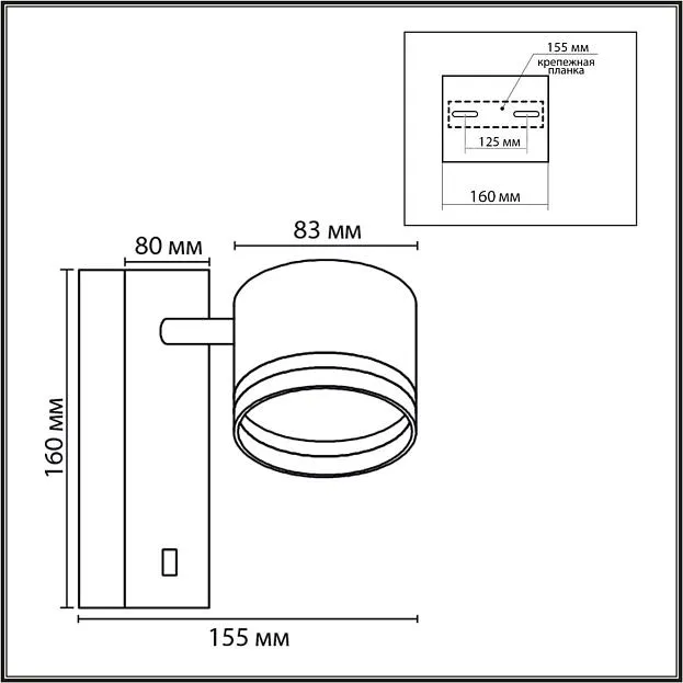 | Дополнительные параметры и особенности | Поворотный механизм плафона |