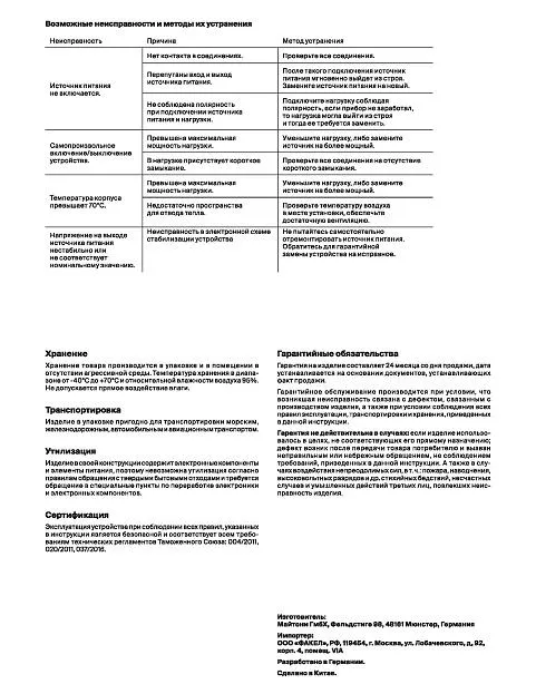 | Гарантия (лет) | 2 |