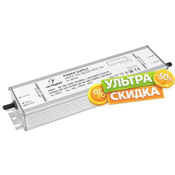 Купить Блок питания ARPV-UH-50320-PFC-FV (24V 240W, 36-48V 320W, 10A) (Arlight, IP67 Металл, 7 лет) 055740 в интернет-магазине ЛюстраНаДом со скидкой и кешбеком. Работаем с НДС, доставляем на дом и в ПВЗ. Продажа Arlight 055740 ARPV-UH осуществляется с доставкой по Москве и регионам России бесплатно от 5000 р.