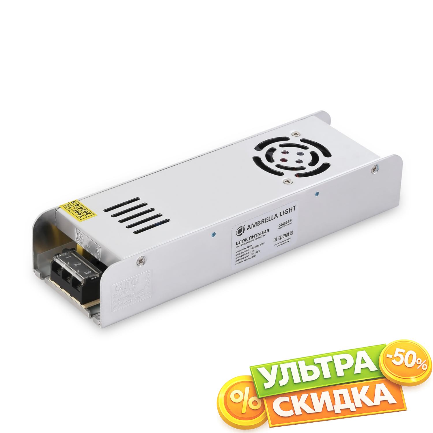 Купить Блок питания для светодиодной ленты Ambrella light GS8686 в интернет-магазине ЛюстраНаДом со скидкой и кешбеком. Работаем с НДС, доставляем на дом и в ПВЗ. Продажа Ambrella light GS8686 LED Driver 24V осуществляется с доставкой по Москве и регионам России.