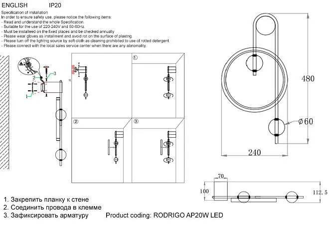 | Мощность лампочек, Вт | 20W |