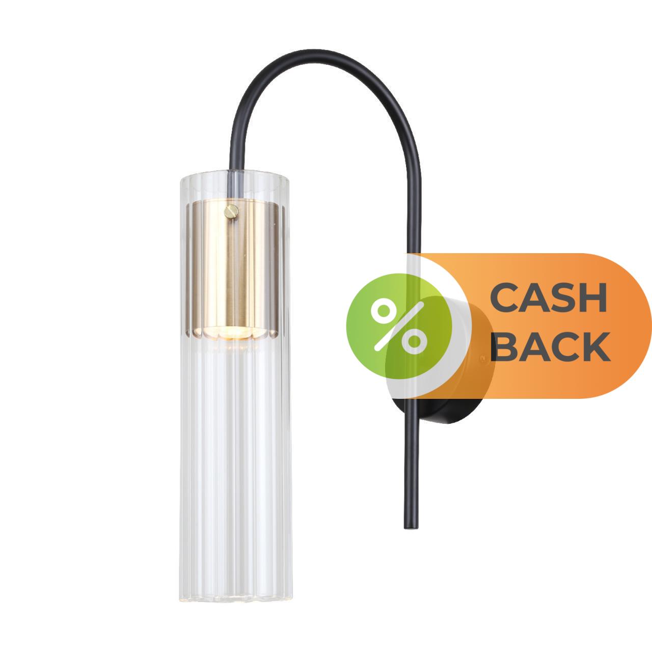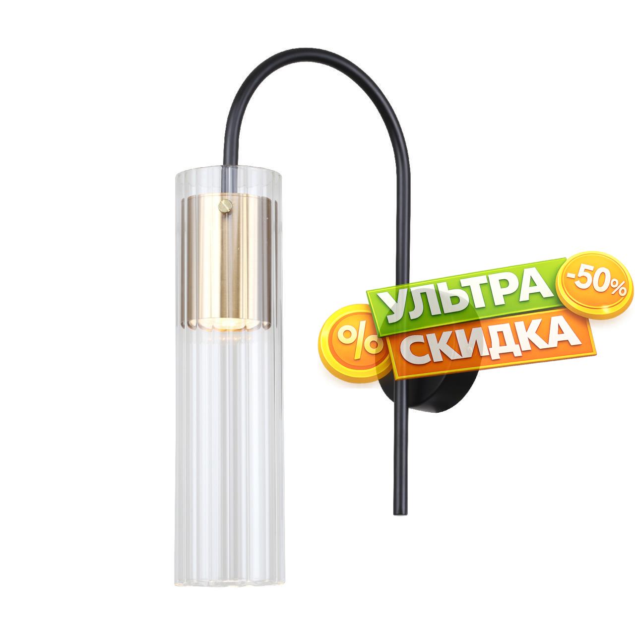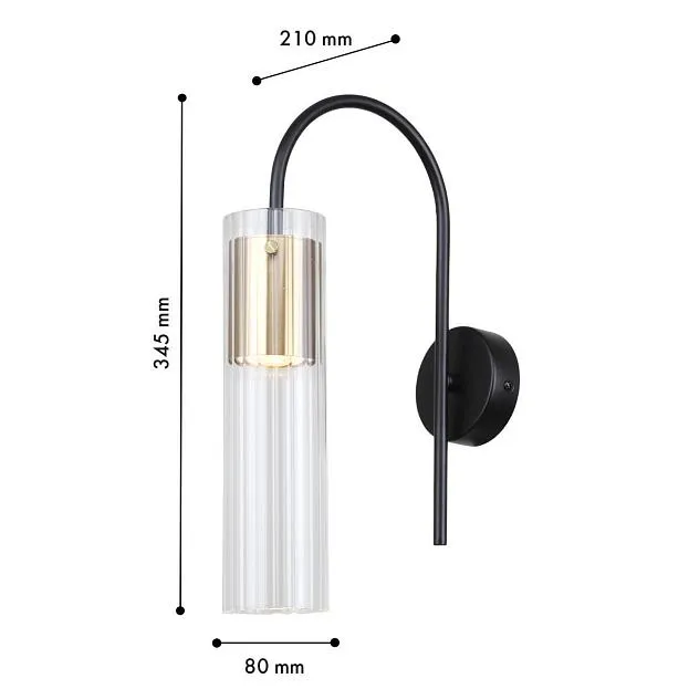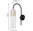 | Описание светильника | Металлический каркас черного цвета, декоративный элемент золотого цвета, цилиндрический плафон из прозрачного стекла. |