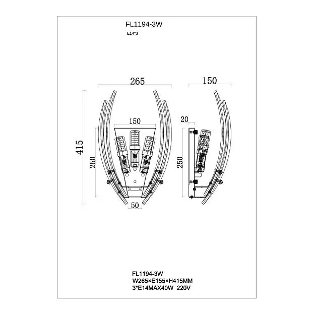 | Ширина бра, мм | 265 |