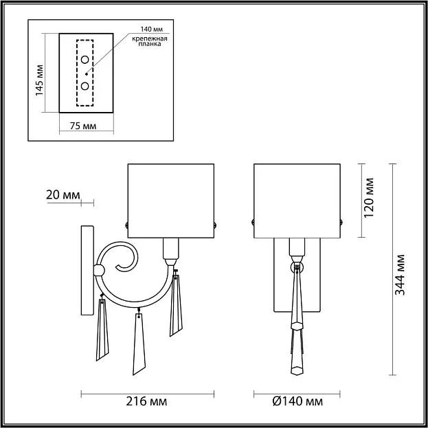 | Высота полная, мм | 344 |