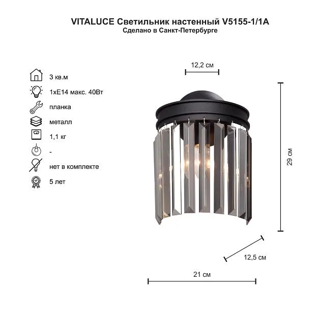 Купить Бра Vitaluce V5155-1/1A в интернет-магазине ЛюстраНаДом со скидкой и кешбеком. Работаем с НДС, доставляем на дом и в ПВЗ. Продажа Vitaluce V5155-1/1A V5155 осуществляется с доставкой по Москве и регионам России.