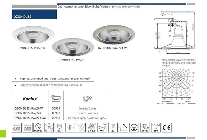 Купить Cветильник встраиваемый е27 KANLUX OZON DLBS-1AV/27-W в интернет-магазине ЛюстраНаДом со скидкой и кешбеком. Работаем с НДС, доставляем на дом и в ПВЗ. Продажа Kanlux 905 осуществляется с доставкой по Москве и регионам России бесплатно от 5000 р.