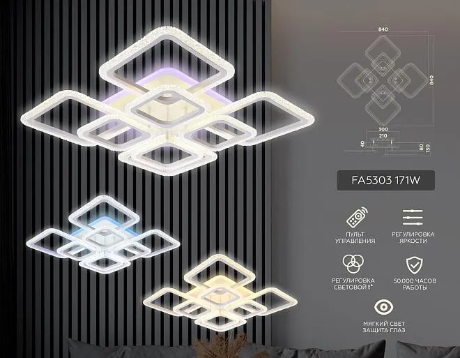 Купить FA5303 WH белый 171W 840*840*130 (ПДУ РАДИО 2.4) Потолочный светодиодный светильник с пультом в интернет-магазине ЛюстраНаДом со скидкой и кешбеком. Работаем с НДС, доставляем на дом и в ПВЗ. Продажа Ambrella light FA5303 FA осуществляется с доставкой по Москве и регионам России бесплатно от 5000 р.