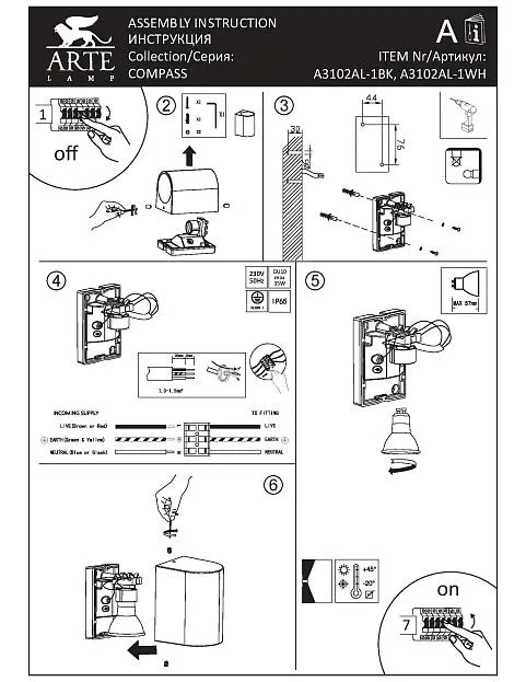 Купить Фасадный светильник Arte Lamp COMPASS A3102AL-1WH в интернет-магазине ЛюстраНаДом со скидкой и кешбеком. Работаем с НДС, доставляем на дом и в ПВЗ. Продажа Arte Lamp A3102AL-1WH COMPASS осуществляется с доставкой по Москве и регионам России бесплатно от 5000 р.