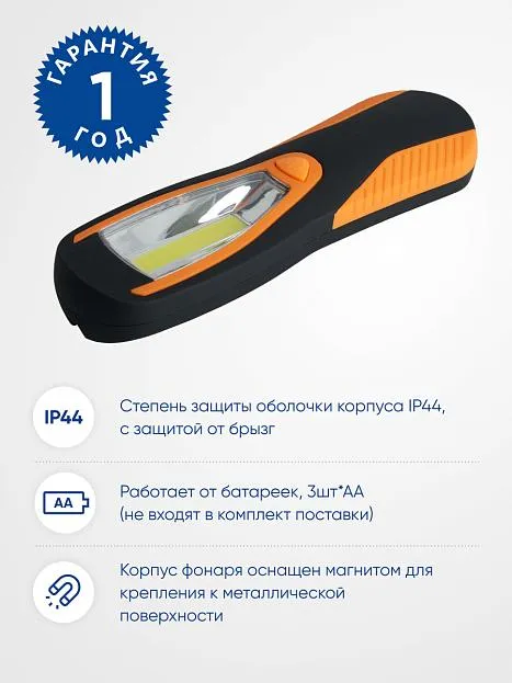 | Название | Фонарь рабочий FERON TH2402 на батарейках 3*AA, COB 2W пластик |