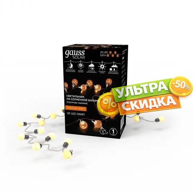 Купить Гирлянда садовая на солнечной батарее Gauss GS034 Solar в интернет-магазине ЛюстраНаДом со скидкой и кешбеком. Работаем с НДС, доставляем на дом и в ПВЗ. Продажа Gauss GS034 Solar осуществляется с доставкой по Москве и регионам России.