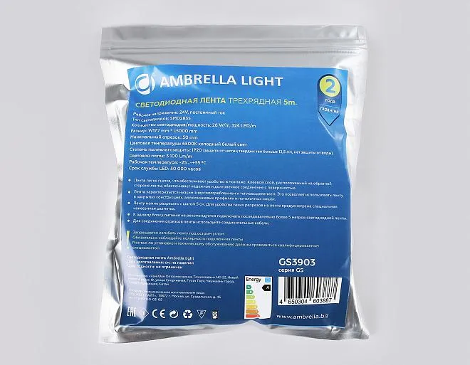 Купить GS3903 2835 324Led/ 26W m/ 24V IP20 6500K/ 5000*18*1.2mm (2 конт.) Светодиодная лента трехрядная Ambrella Light GS3903 2835 324Led /26W m/ 24V IP20 6500K 5m в интернет-магазине ЛюстраНаДом со скидкой и кешбеком. Работаем с НДС, доставляем на дом и в ПВЗ. Продажа Ambrella light GS3903 GS осуществляется с доставкой по Москве и регионам России.