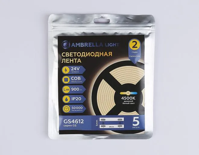 Купить GS4612 COB 400Led/10W m/ 24V IP20 4500K/ 5m*5mm*2.1mm (2 конт.) в интернет-магазине ЛюстраНаДом со скидкой и кешбеком. Работаем с НДС, доставляем на дом и в ПВЗ. Продажа Ambrella light GS4612 ILLUMINATION осуществляется с доставкой по Москве и регионам России бесплатно от 5000 р.