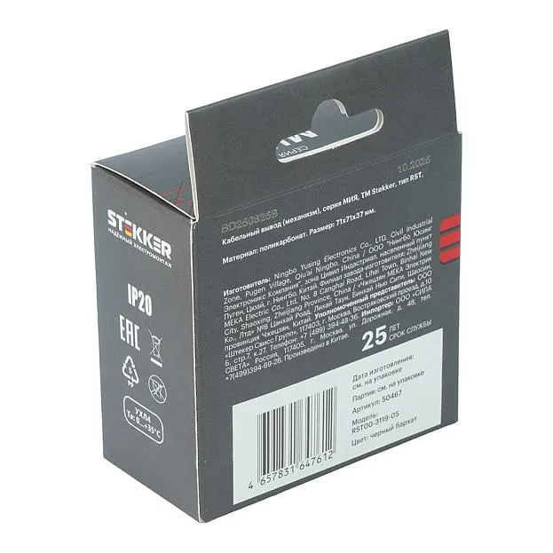 | Название | Кабельный вывод (механизм), STEKKER, серия Мия, RST00-3119-05, черный бархат |