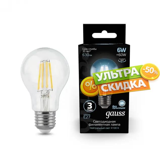 Купить Лампа Gauss 102802206 LED Filament A60 E27 6W 4100K в интернет-магазине ЛюстраНаДом со скидкой и кешбеком. Работаем с НДС, доставляем на дом и в ПВЗ. Продажа Gauss 102802206 Filament A60 осуществляется с доставкой по Москве и регионам России бесплатно от 5000 р.