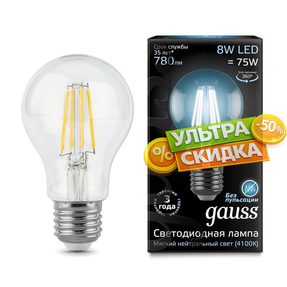 Купить Лампа Gauss 102802208 филаментная E27 8W 4100К груша прозрачная Filament A60 в интернет-магазине ЛюстраНаДом со скидкой и кешбеком. Работаем с НДС, доставляем на дом и в ПВЗ. Продажа Gauss 102802208 Filament A60 осуществляется с доставкой по Москве и регионам России бесплатно от 5000 р.