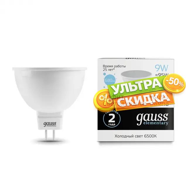 Купить Лампа Gauss 13539 GU5.3 9W 6500K полусфера матовая в интернет-магазине ЛюстраНаДом со скидкой и кешбеком. Работаем с НДС, доставляем на дом и в ПВЗ. Продажа Gauss 13539 Elementary MR16 осуществляется с доставкой по Москве и регионам России.