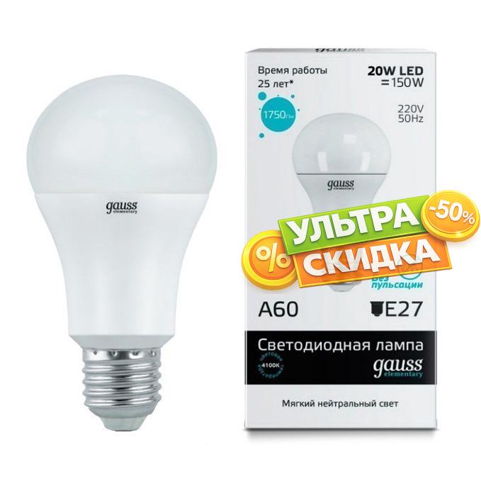 Купить Лампа Gauss 23229 E27 20W 4100K в интернет-магазине ЛюстраНаДом со скидкой и кешбеком. Работаем с НДС, доставляем на дом и в ПВЗ. Продажа Gauss 23229 LED A60 осуществляется с доставкой по Москве и регионам России.