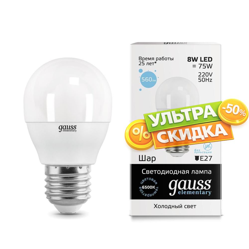Купить Лампа Gauss 53238 E27 8W 6500K шар матовый Elementary в интернет-магазине ЛюстраНаДом со скидкой и кешбеком. Работаем с НДС, доставляем на дом и в ПВЗ. Продажа Gauss 53238 Elementary осуществляется с доставкой по Москве и регионам России бесплатно от 5000 р.