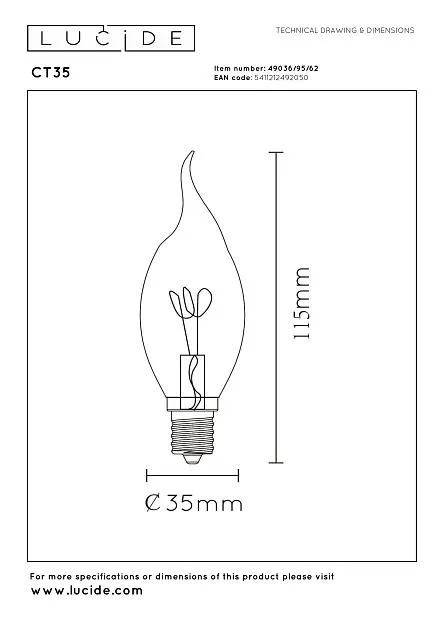 Купить Лампа Lucide CT35 49036/95/62 в интернет-магазине ЛюстраНаДом со скидкой и кешбеком. Работаем с НДС, доставляем на дом и в ПВЗ. Продажа Lucide 49036/95/62 CT35 осуществляется с доставкой по Москве и регионам России бесплатно от 5000 р.