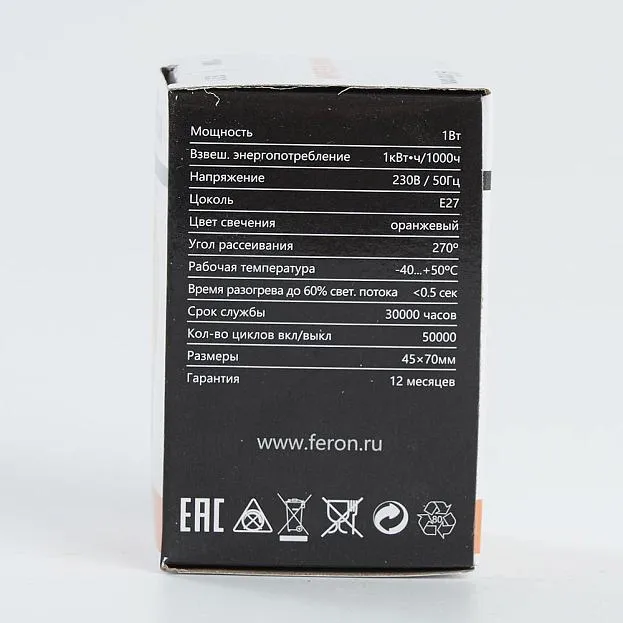 | Название | Лампа светодиодная Feron LB-37 Шарик E27 1W оранжевый |
