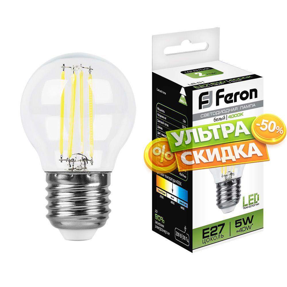 Купить Лампа светодиодная Feron 25582 LB-61 Шарик E27 5W 4000K в интернет-магазине ЛюстраНаДом со скидкой и кешбеком. Работаем с НДС, доставляем на дом и в ПВЗ. Продажа Feron 25582 LB-61 осуществляется с доставкой по Москве и регионам России бесплатно от 5000 р.