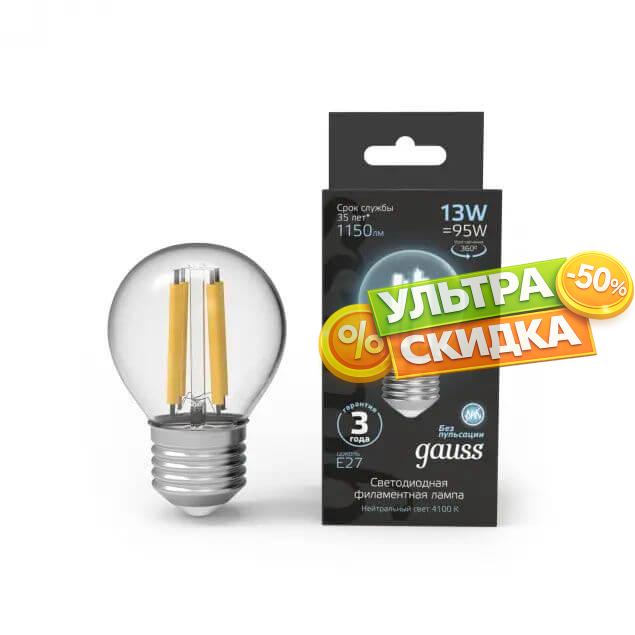 Купить Лампа светодиодная Gauss 105802213 E27 13W 4100K прозрачная в интернет-магазине ЛюстраНаДом со скидкой и кешбеком. Работаем с НДС, доставляем на дом и в ПВЗ. Продажа Gauss 105802213 Filament осуществляется с доставкой по Москве и регионам России.