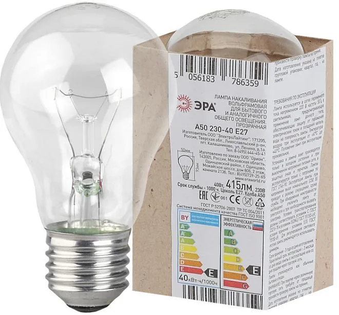 Лампочки накаливания ЭРА