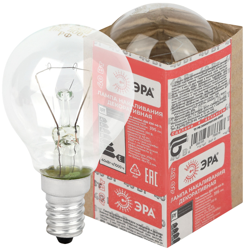 Лампочка накаливания ЭРА ДШ 230-40-3