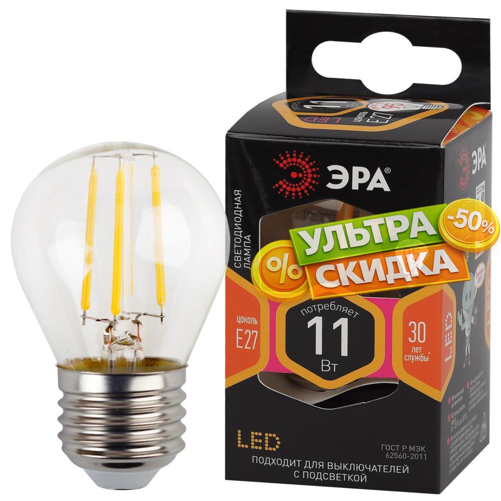 Лампочка светодиодная филаментная ЭРА F-LED P45-11w-827-E27